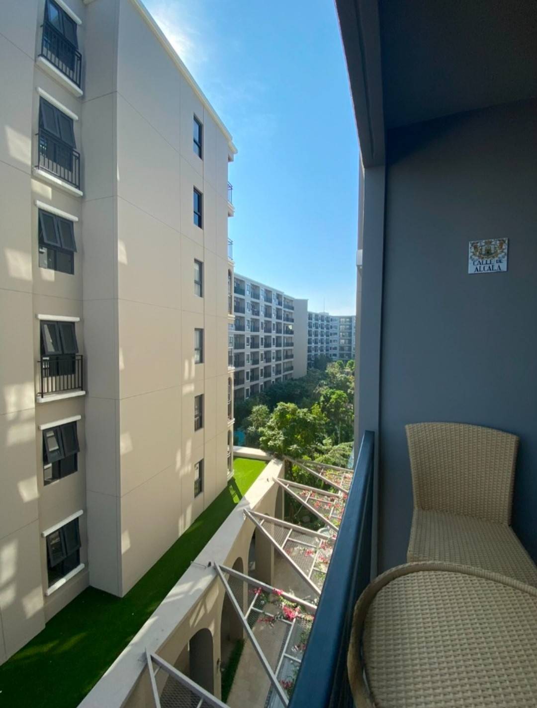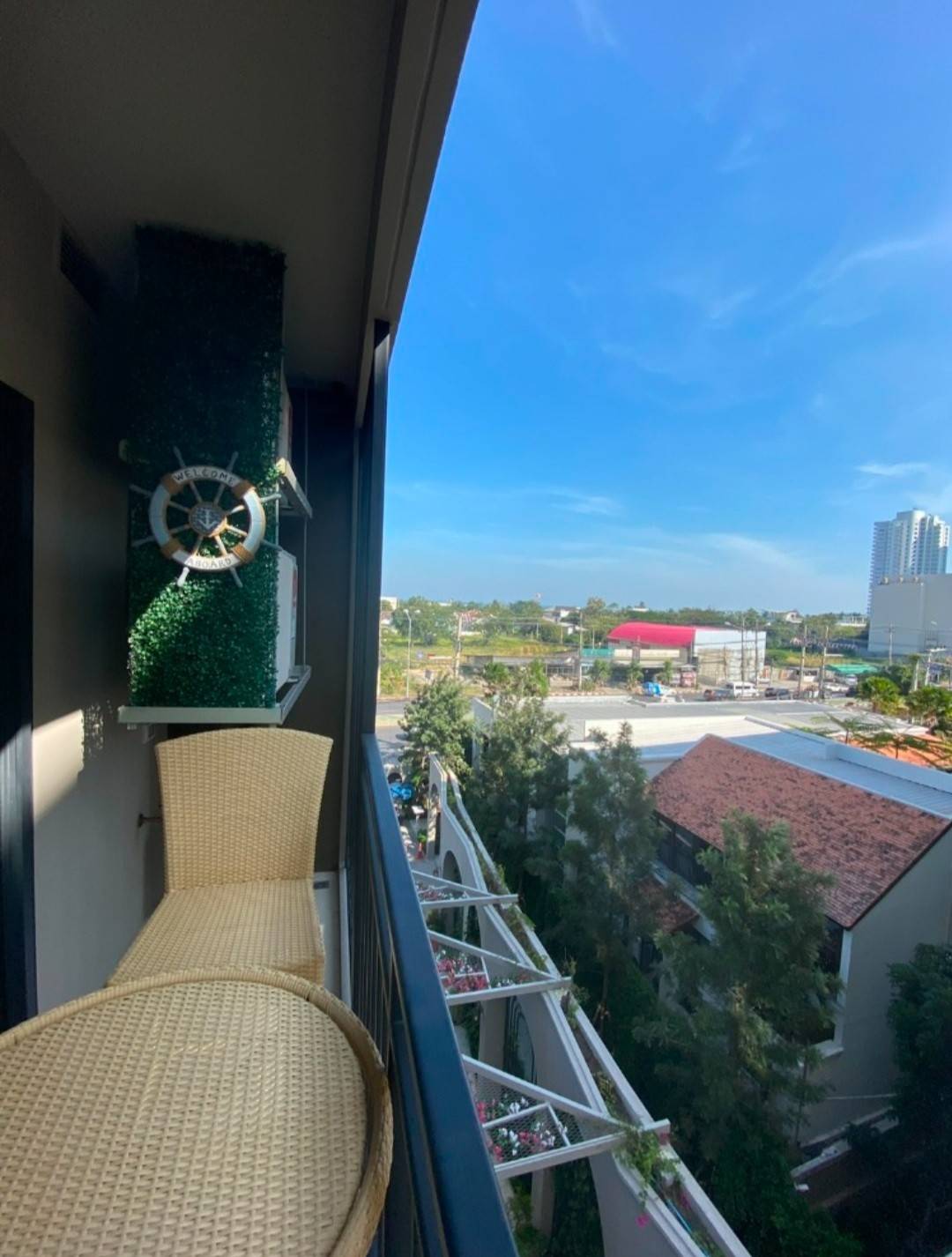 – ชุดโต๊ะเก้าอี้หวายเทียมริมระเบียงไว้นั่งชมวิว