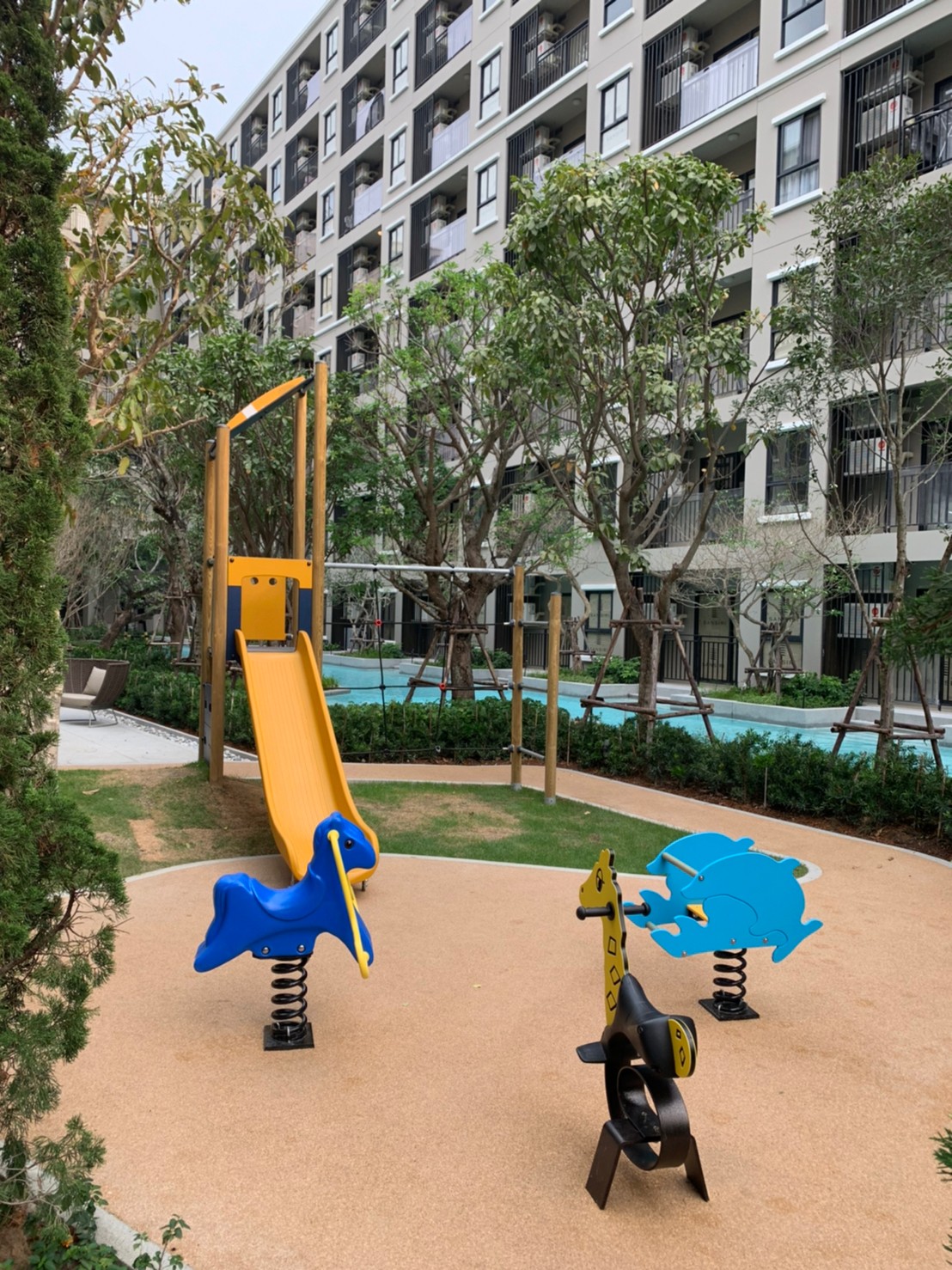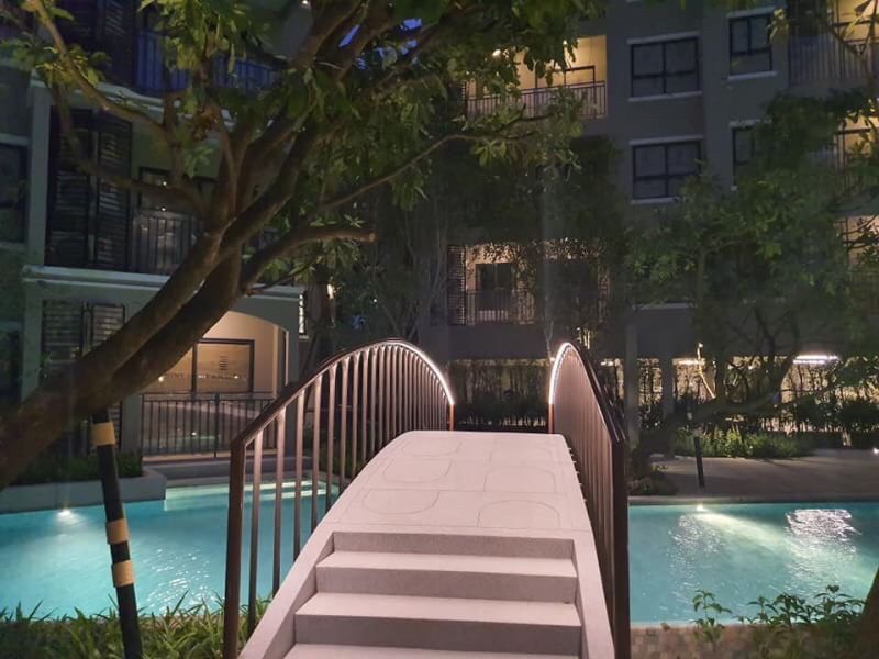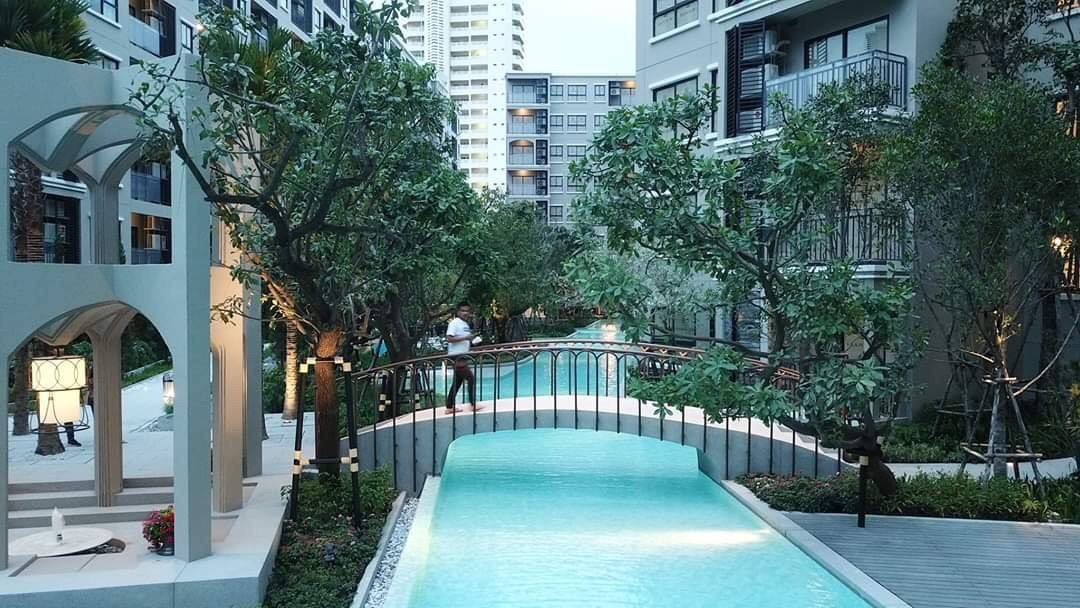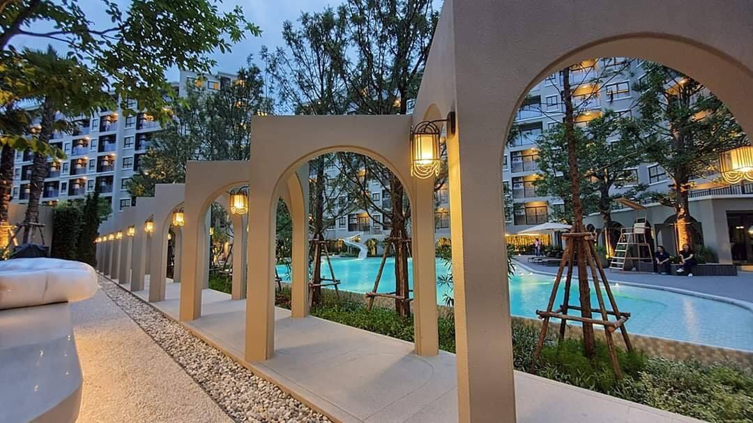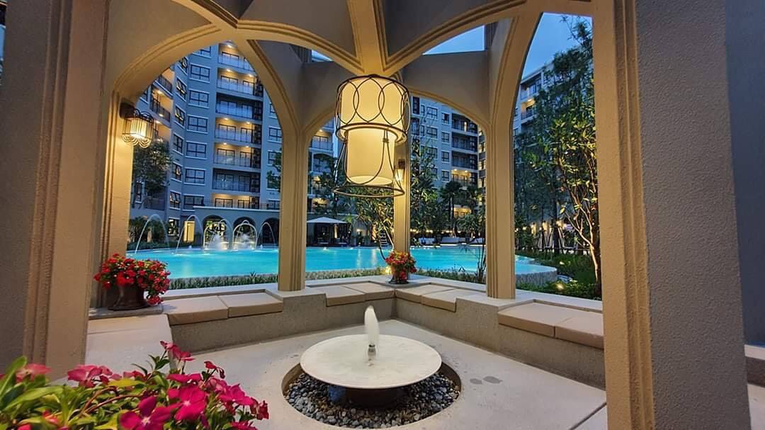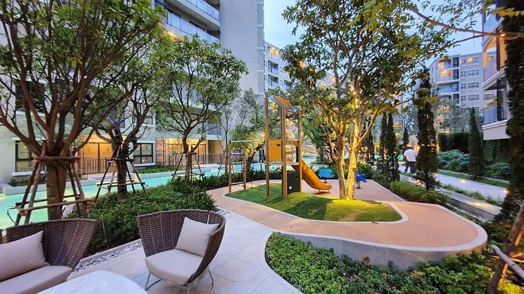 - สวนพักผ่อนสวยงามรอบคอนโด, พร้อมมุม BBQ Area, และพื้นที่่นั่งพักผ่อนริมสระ, และสนามเด็กเล่น