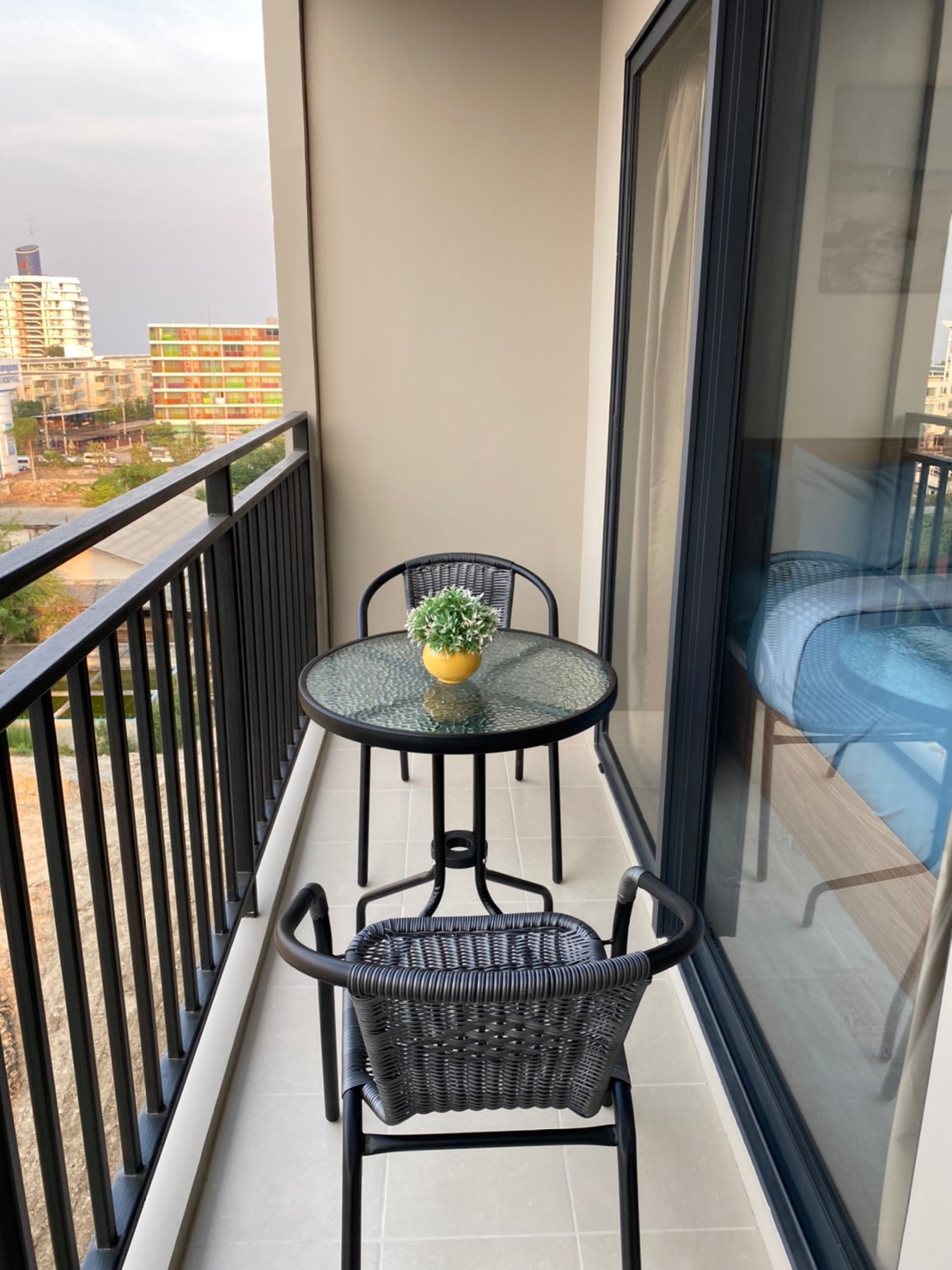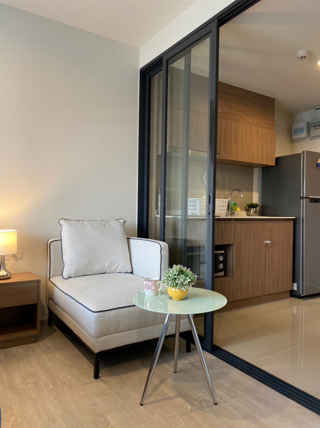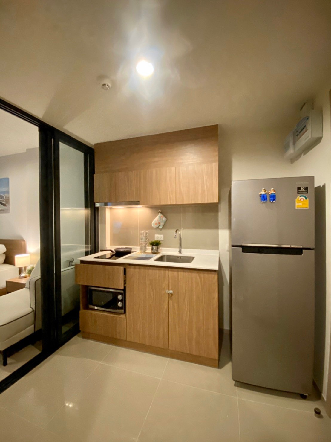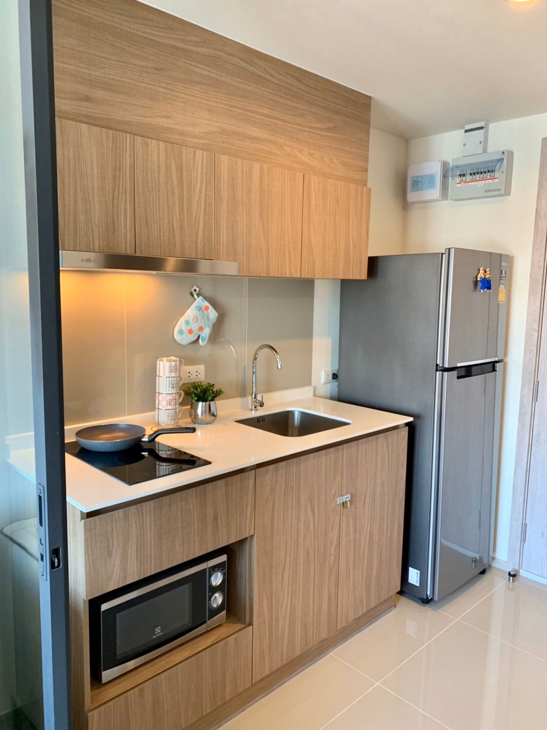 - พื้นที่ห้อง 28 ตร.ม. พร้อมระเบียงนั่งเล่น ,มีเตาไฟฟ้าพร้อมอุปกรณ์ครัวครบครัน